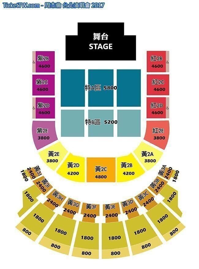 門票價錢: NT 5800 / 5200 / 4800 / 4600 / 4200 / 3800 / 2400 / 1800 / 800。