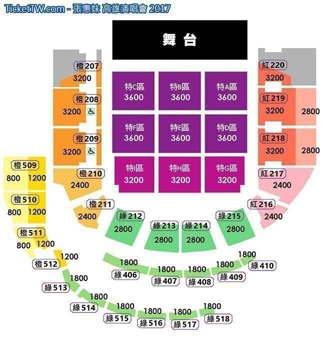 門票價錢: NT 3600 / 3200 / 2800 / 2400 / 1800 / 1200 / 800。