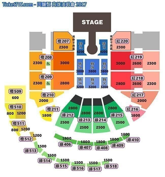 門票價錢: NT 4200 / 3800 / 3200 / 3000 / 2800 / 2600 / 2500 / 2300 / 2000 / 1800 / 1500 / 1200 / 800 / 600。