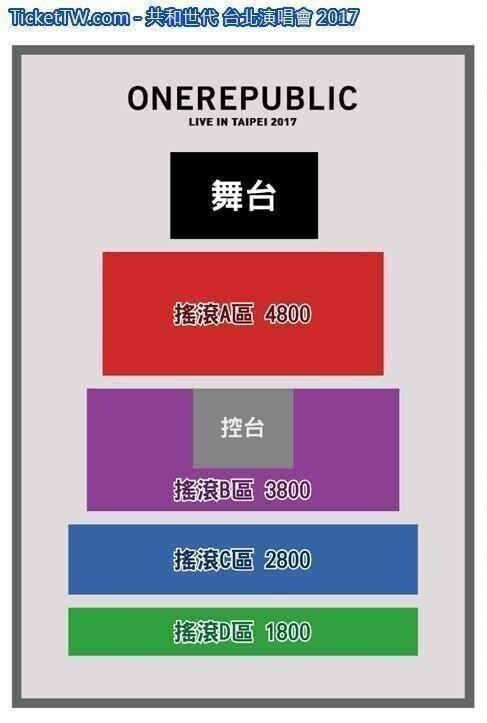 門票價錢: NT 4800 / 3800 / 2800 / 1800。