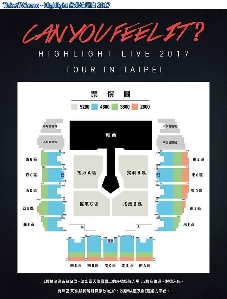 門票價錢: NT 5200 / 4600 / 3600 / 2600。