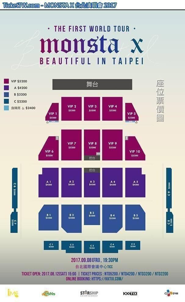 門票價錢: NT 5200 / 4200 / 3200 / 2200。