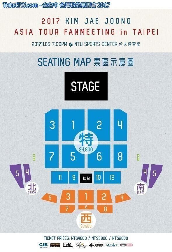 金在中 台灣粉絲見面會 2017 座位表 Seating Plan