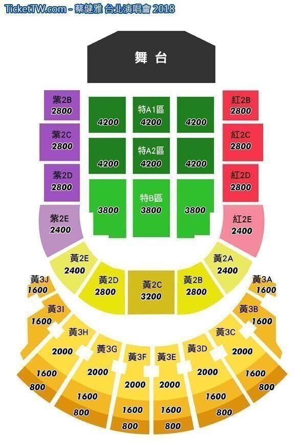 門票價錢: NT 4200 / 3800 / 3200 / 2800 / 2400 / 2000 / 1600 / 800。