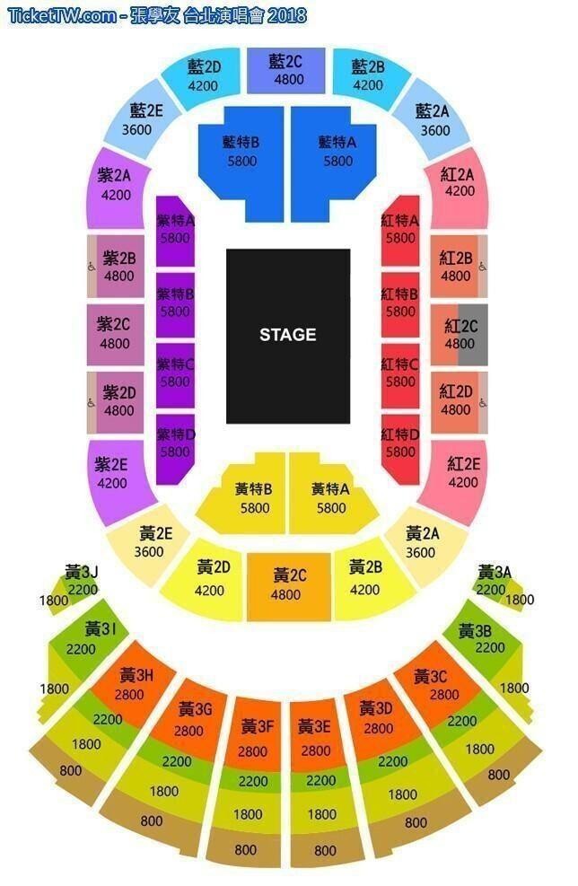 門票價錢: NT 5800 / 4800 / 4200 / 3600 / 2800 / 2200 / 1800 / 800。