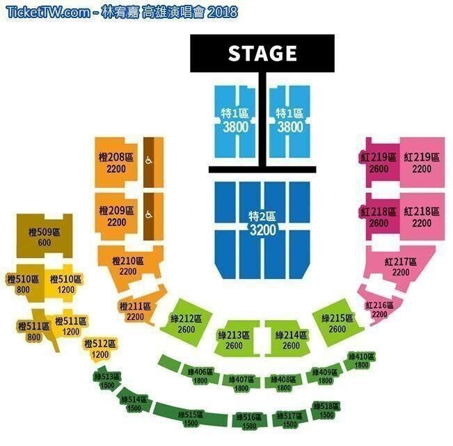 門票價錢: NT 3800 / 3200 / 2600 / 2200 / 1800 / 1500 / 1200 / 800 / 600。