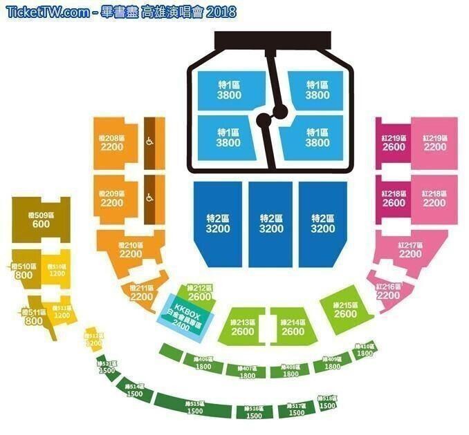 門票價錢: NT 3800 / 3200 / 2600 / 2200 / 800 / 800 / 600 / 500 / 200。