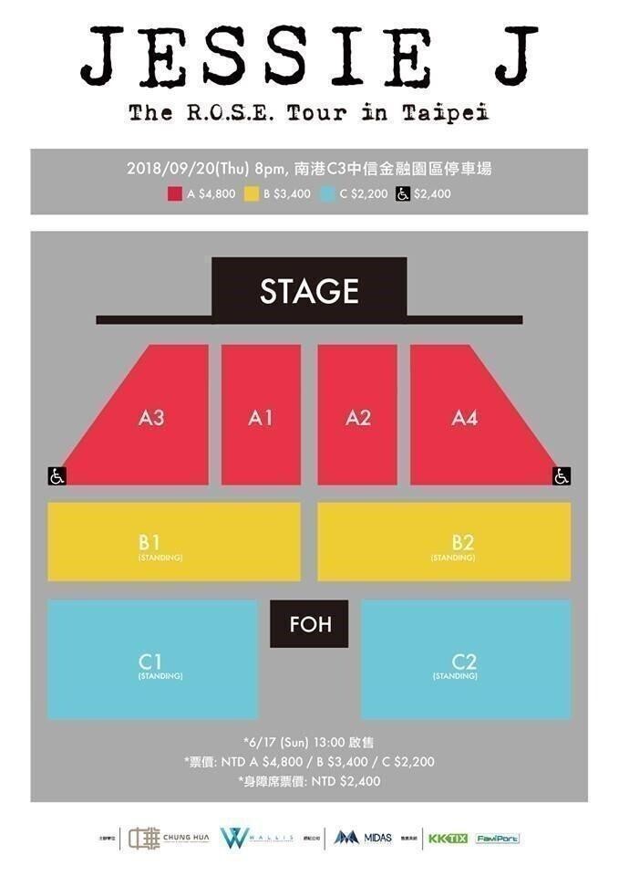 Jessie J 台北演唱會 2018 座位表 Seating Plan