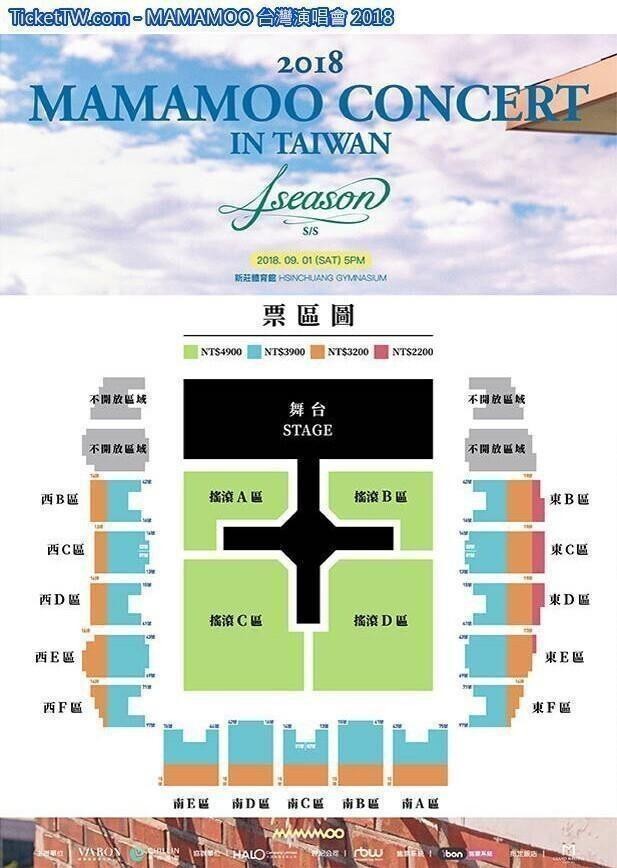 門票價錢: NT 4900 / 3900 / 3200 / 2200。