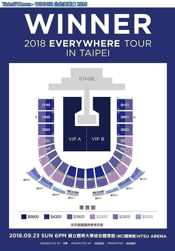 門票價錢: NT 5800 / 4300 / 3800 / 3300 / 2800 / 2300。