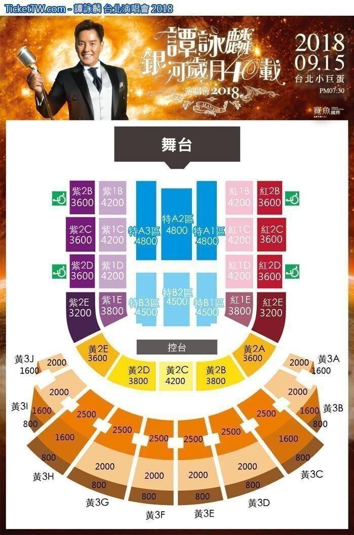 門票價錢: NT 4800 / 4500 / 4200 / 3800 / 3600 / 3200 / 2500 / 2000 / 1600 / 800。