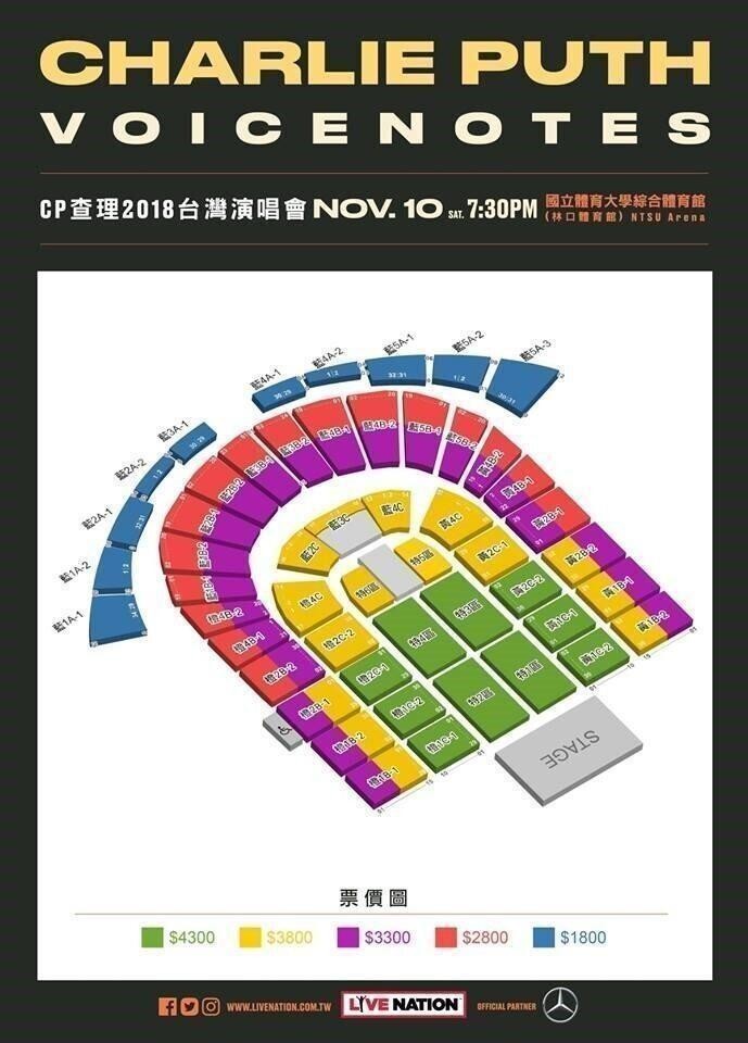 門票價錢: NT 4300 / 3800 / 3300 / 2800 / 1800。