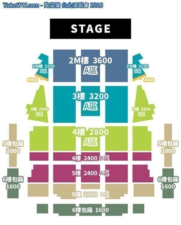 門票價錢: NT 3600 / 3200 / 2800 / 2400 / 2000 / 1600。