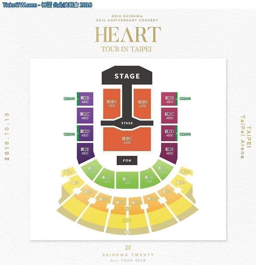 門票價錢: NT 6200 / 5400 / 4800 / 3800 / 2800 / 800。