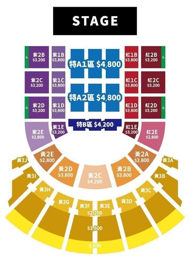 門票價錢: NT 4800 / 4200 / 3800 / 3200 / 2800 / 2200 / 1800 / 800。