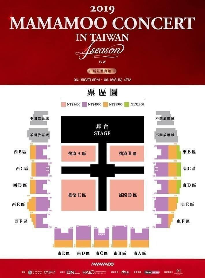 門票價錢: NT 5400 / 4900 / 3900 / 2900。