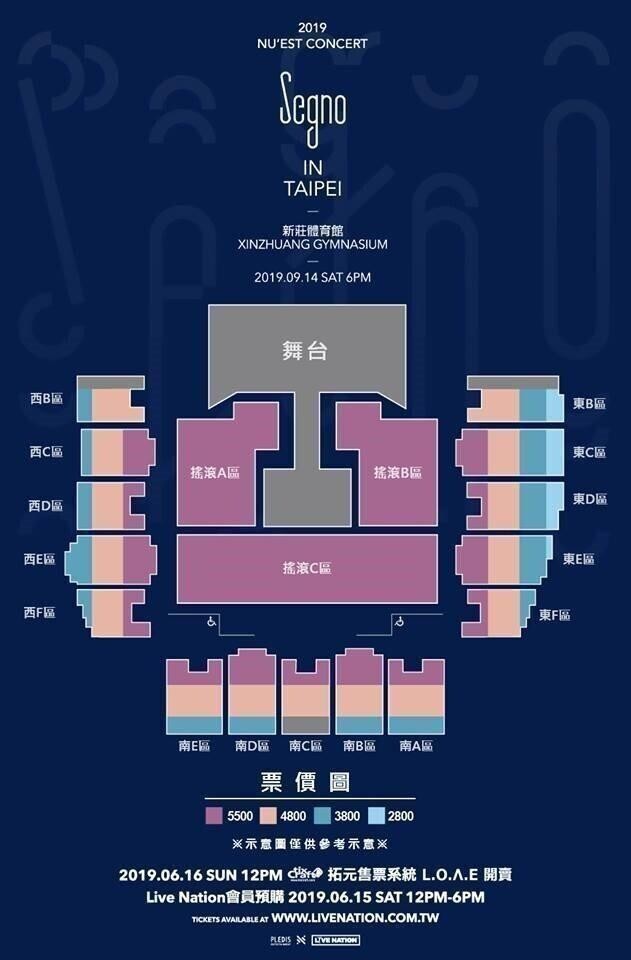 門票價錢: NT 5500 / 4800 / 3800 / 2800。