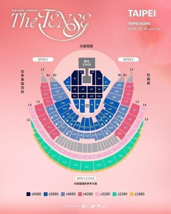 門票價錢: NT 6680 / 5880 / 4880 / 4280 / 3280 / 2280 / 1880。