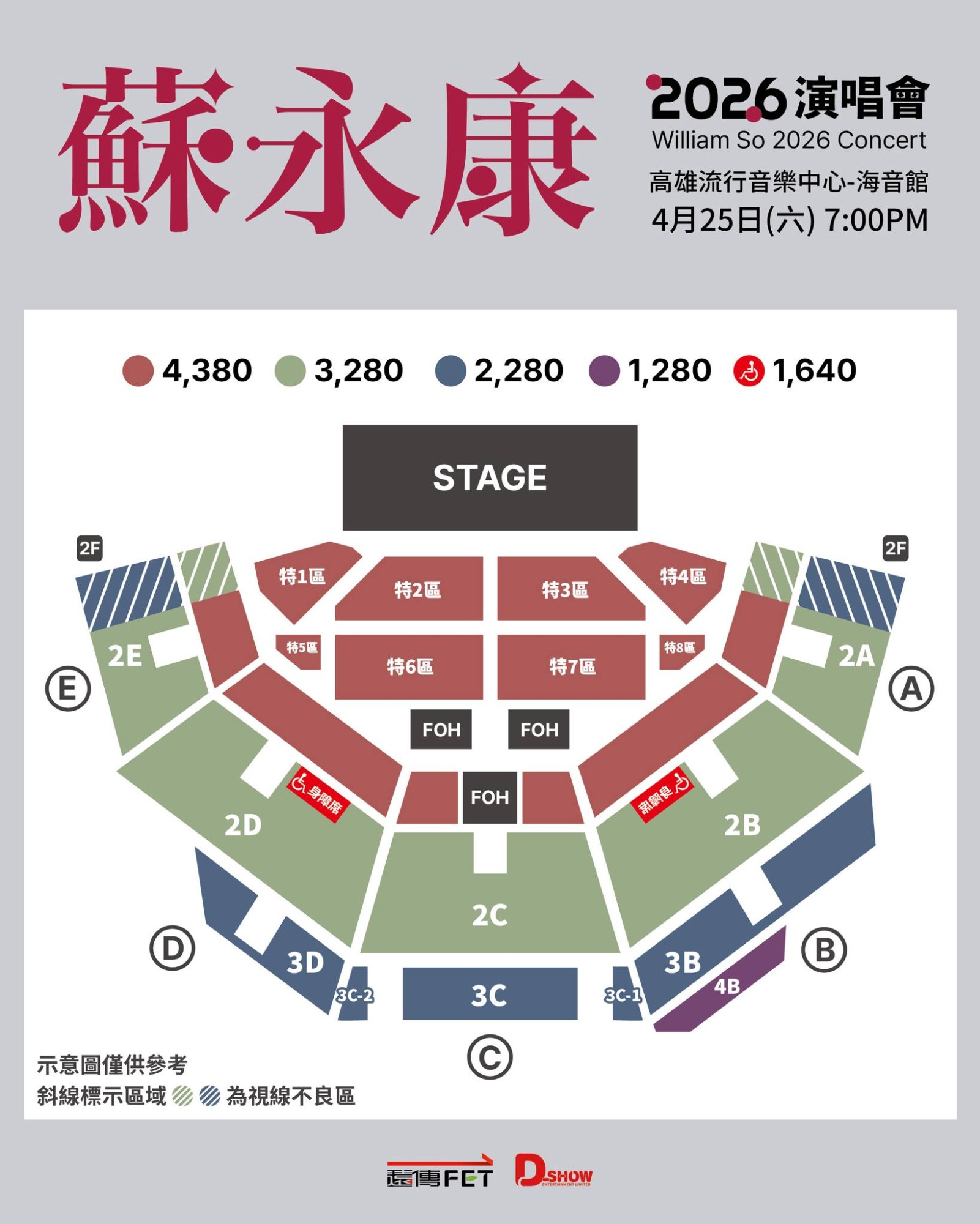 門票價錢: NT 4380 / 3280 / 2280 / 1280。
